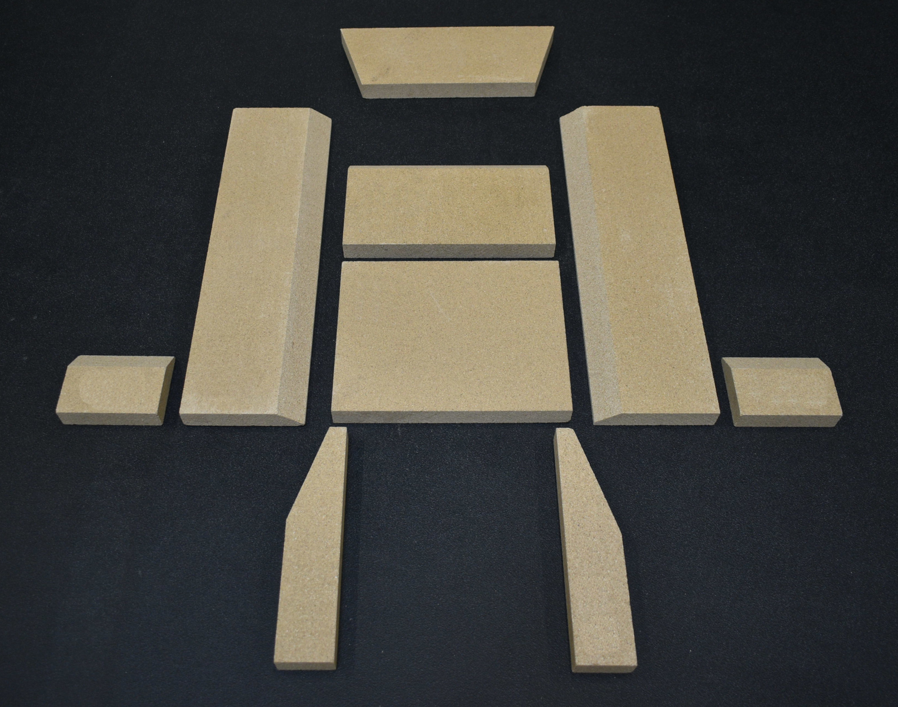 - Pierre latérale arrière gauche (120 x 430 x 25 mm), pierre latérale arrière droite (120 x 430 x 25 mm)