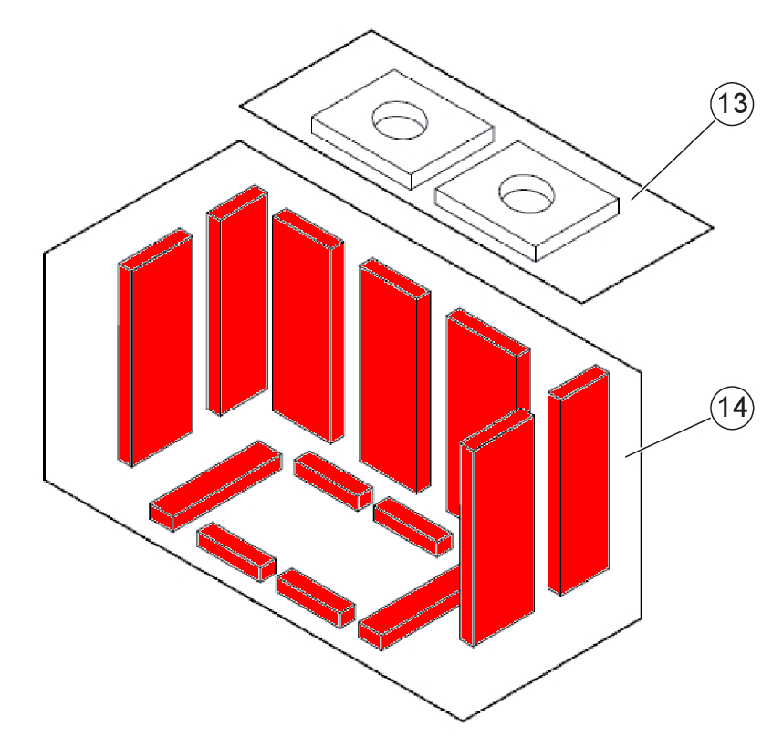 - pierre de plaque arrière gauche (310 x 130 x 30 mm), pierre de plaque arrière droit (310 x 130 x 30 mm)